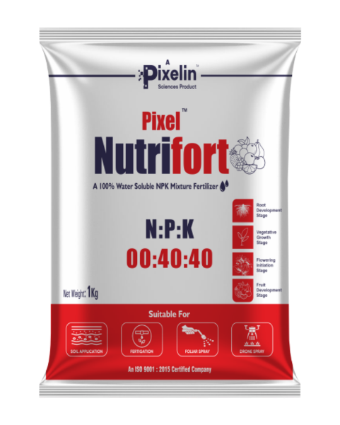 It is a high P & K formulation that supports optimal flowering and fruiting, strengthens roots, and promotes early and uniform blooms. It enhances fruit size, taste, and shelf life while improving drought and disease resilience with fast nutrient absorption.