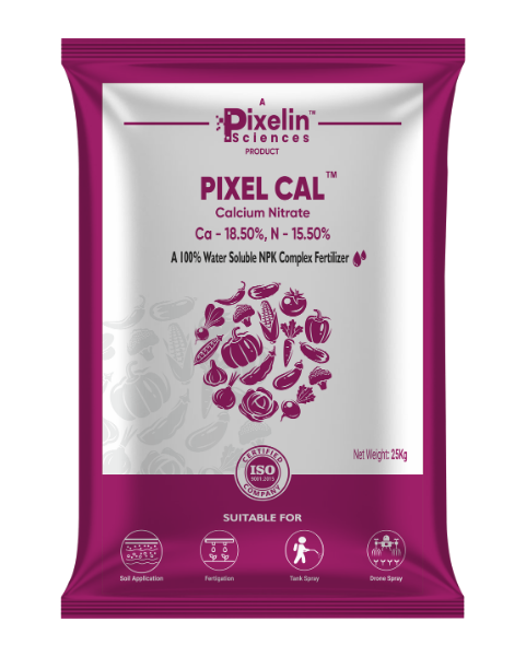 It supplies readily available nitrogen and calcium to boost nutrient uptake and provide continuous calcium for healthy plant growth. It improves bud formation and fruit set, strengthens cell walls, and enhances fruit quality while extending shelf life.