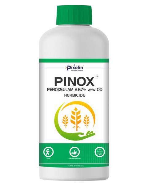 PINOX (Penoxsulam 2.67% w/w OD) is a selective, systemic post-emergence herbicide for paddy fields. It controls broadleaf, sedge, and grassy weeds, ensuring long-lasting weed management, healthier rice growth, and improved yields with a crop-safe formulation.